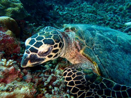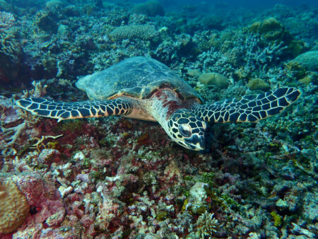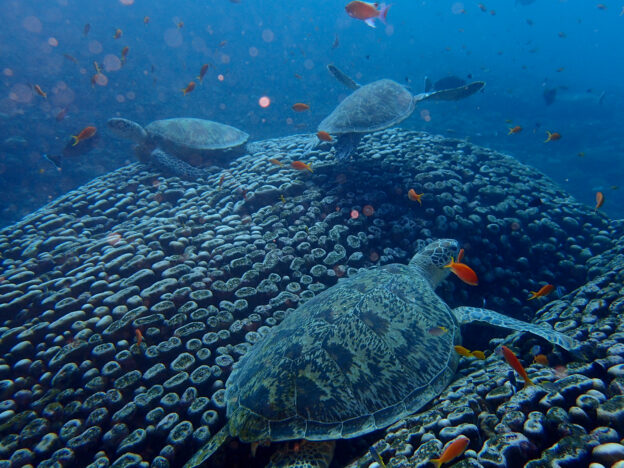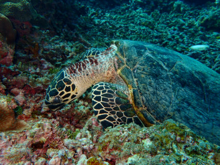 ほぼアオウミガメですがタイマイもまれにいます。