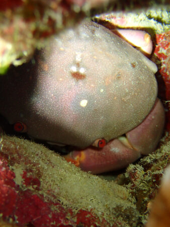 丸っこくて可愛いカニが挟まっていました。