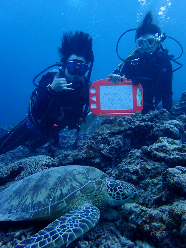 「ちゃんと潜れたら写真いっぱい撮るからね」と約束していました。