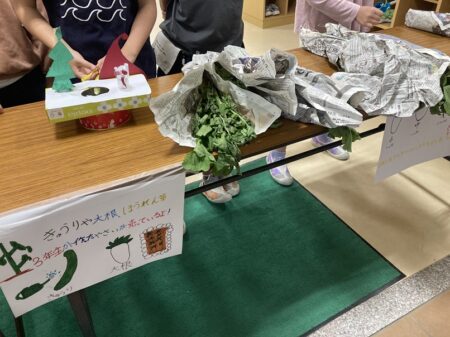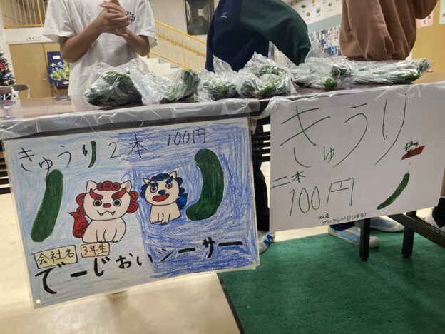 冬休み直前、3年生の四男が学校で作った野菜を売ると言うので行ってきました。
