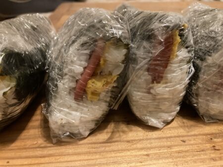 野球の試合だったので早起きしてポークたまごおにぎりを作る。
