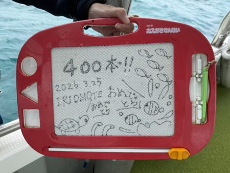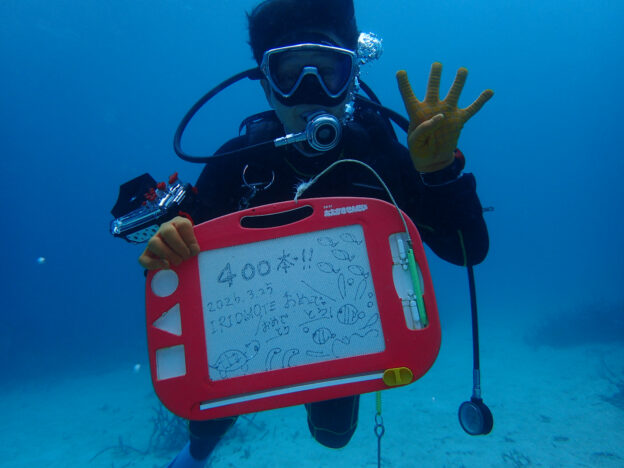 400本!! Mさん、400本になりましたー! おめでとうございます♬ 西表島に初めて来たのは200本くらいの時。 それからはほぼ西表島でしか潜ってないとの事です。 400本中半分が西表島! いつも来てくれてありがとうございます。 また6月に!!