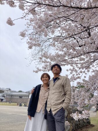 桜がキレイ過ぎるのでテンションが上がって、2年半ぶりのツーショットも撮っておきました。