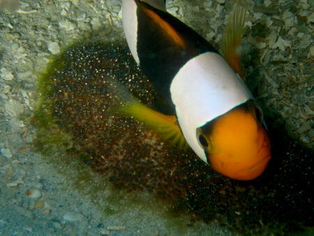 トウアカクマノミは卵を大切に育てていました。