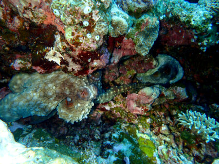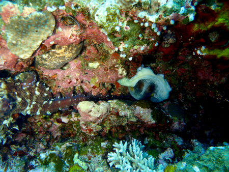 タコがいるーと思ったらサンゴの間に入っていきました。