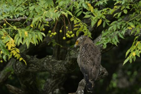 雨宿り中のカンムリワシ。