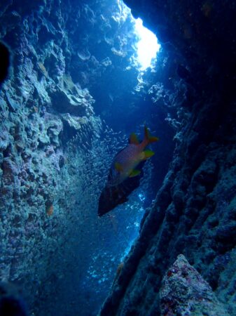 洞窟の中はテンジクダイが居て、トガリエビスやユカタハタもウロウロしています。