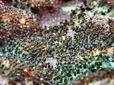 クマノミの卵。今日はスーパームーンの満月なので旅立つかな。