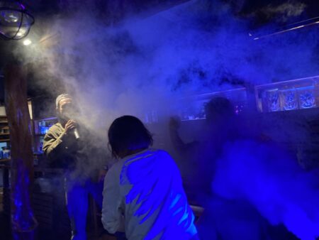 「歌詞が見えない~」と大騒ぎしながら歌って踊る。