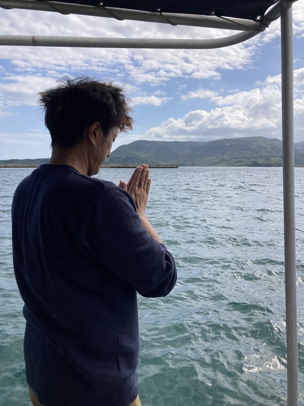 海の神様にお酒を。