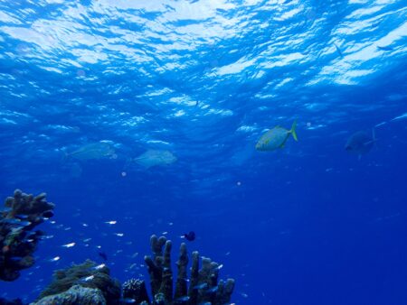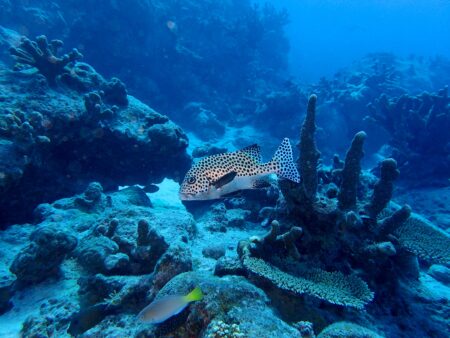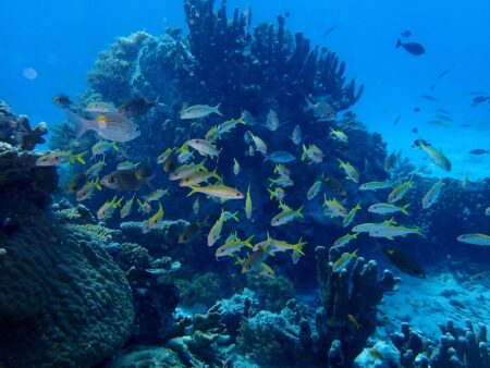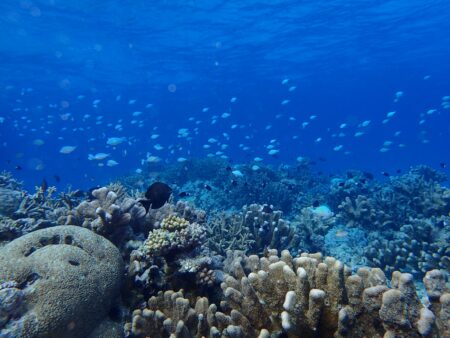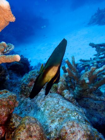 サンゴ礁の海をのんびり泳ぎます。