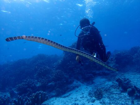 そこへ大きなウミヘビが通り過ぎていきます。