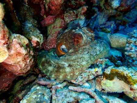 2本目のダイビングでは2匹のタコに遭遇。