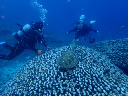 置き物のようにずっとここにいたアオウミガメ。