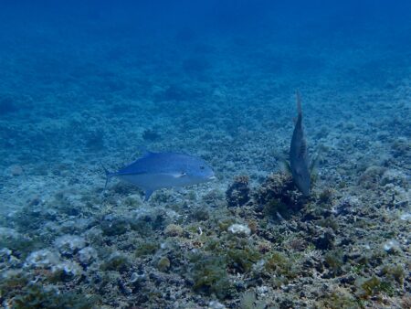 捕食モードのキツネフエフキとカスミアジ。