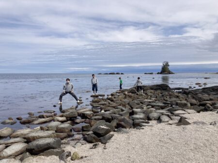 雨晴海岸でのんびり。