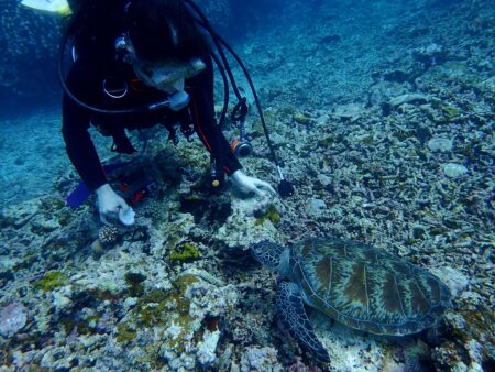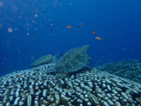 今日はコモンシコロサンゴ周辺にカメだらけでした。
