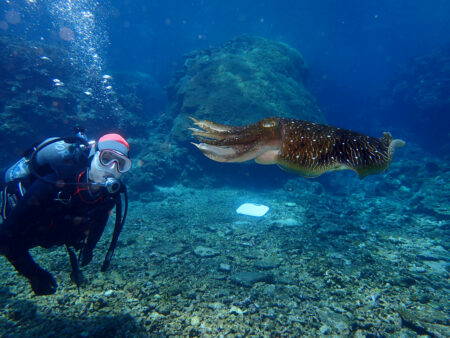 ファンダイブでも体験ダイブでも見られたコブシメ。