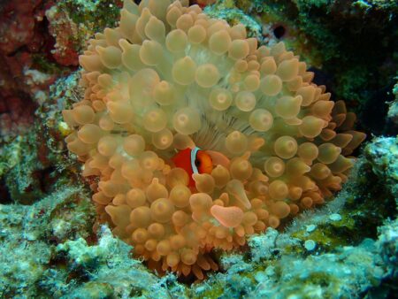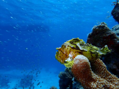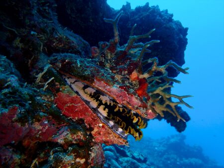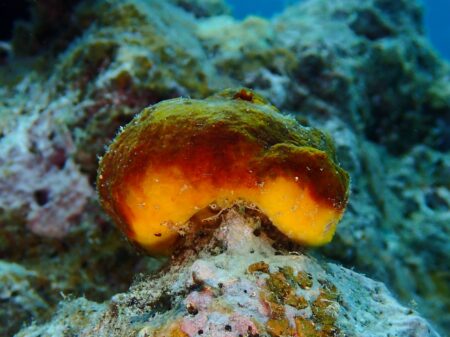 頭にサンゴを乗せたオシャレなミズイリショウジョウ貝。