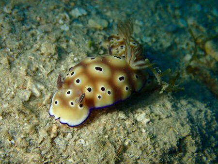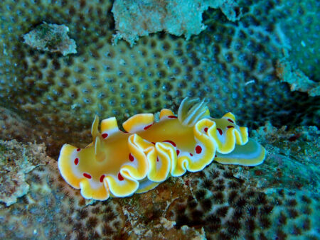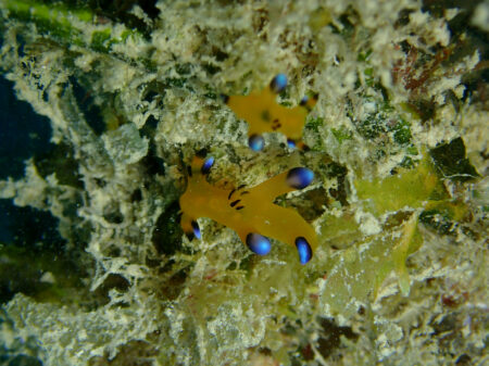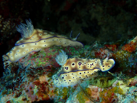 手前はヒョウモンウミウシで、奥はマダライロウミウシですね。
