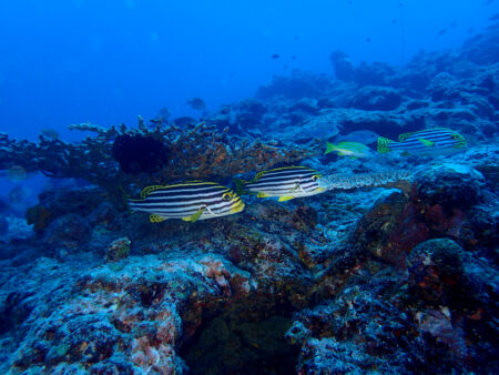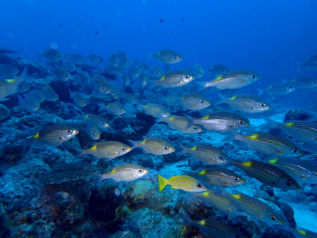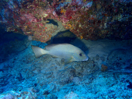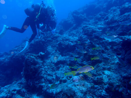 真っ青な水でアカネハナゴイがとってもキレイ。