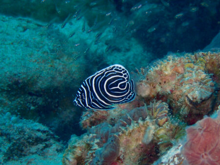 コモンシコロサンゴの上をのんびり泳ぎます。